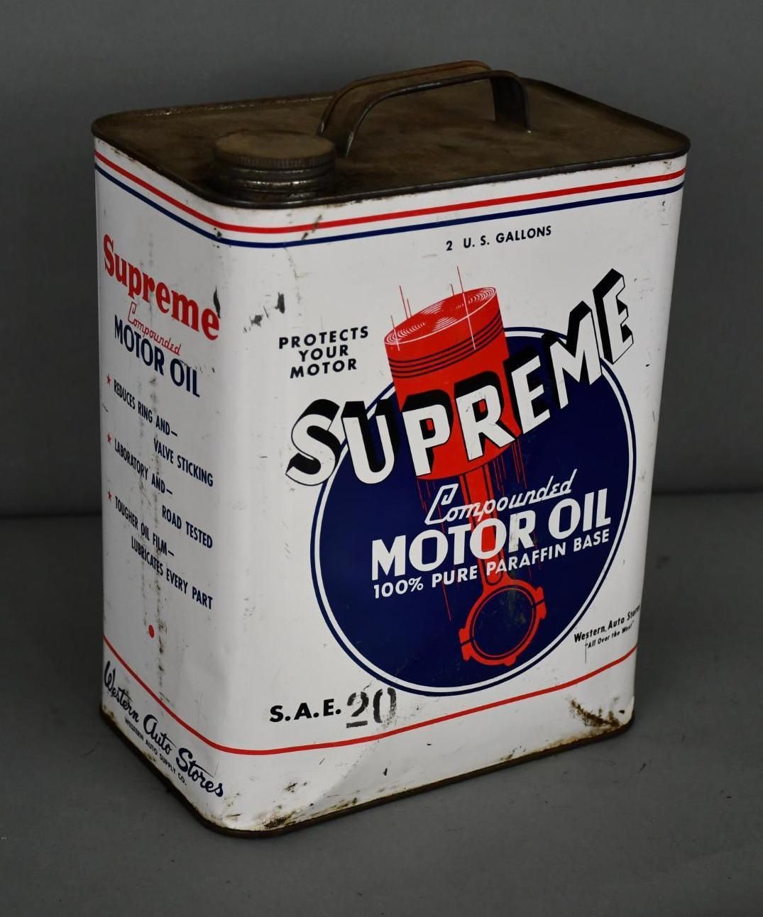 Supreme Motor Oil w/Piston Two-Gallon Metal Can